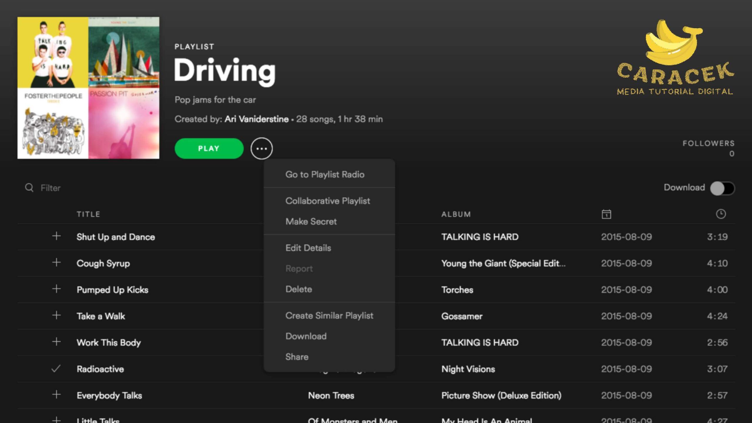 - Anda langsung bisa melihat jumlah pengikut dengan memperhatikan bagian bawah nama playlist tersebut.