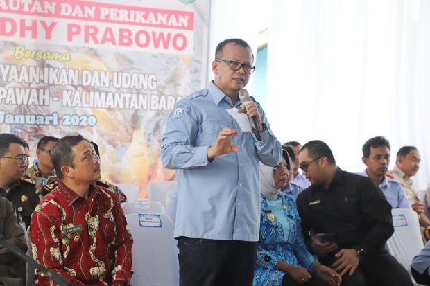Menteri Kelautan dan Perikanan, Edhy Prabowo, meninjau proses budidaya dan memanen udang Vaname secara parsil di Kuala Secapah, Kabupaten Mempawah, Kalimantan Barat. Kegiatan ini merupakan rangkaian dari kunjungan kerja menteri di Kalimantan Barat.